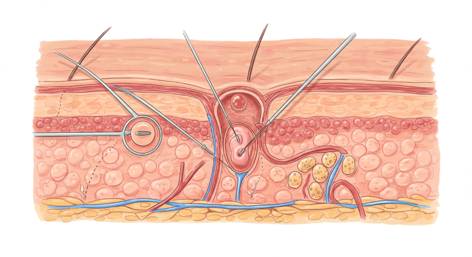 粉瘤の手術方法は、大きく分けて「くり抜き法(へそ抜き法)」と「切除法」の2種類があります。それぞれの特徴と流れをご説明します。